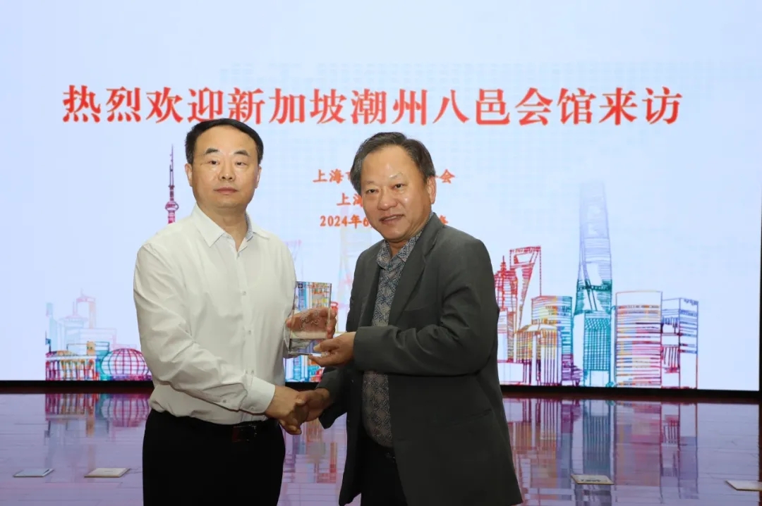 新加坡潮州八邑會館訪問團成員在市政協觀看了《上海影刻》,放映了會館宣傳視頻 。活動中,雙方互贈紀念品並拍照留念。在晚宴會上,大家相談甚歡,具有潮汕特色的菜式甚受新加坡潮州八邑會館訪問團喜愛。儘管居住海外,大家都依然鍾情家鄉美食。