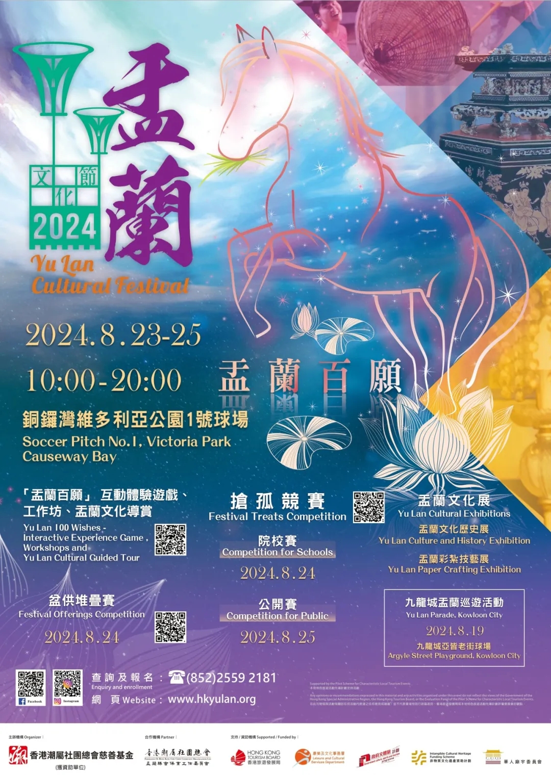 【2024年盂蘭文化節】(第七屆)將於8月23日至25日,在維多利亞公園一號足球場舉行,歡迎廣大市民前來參加活動。