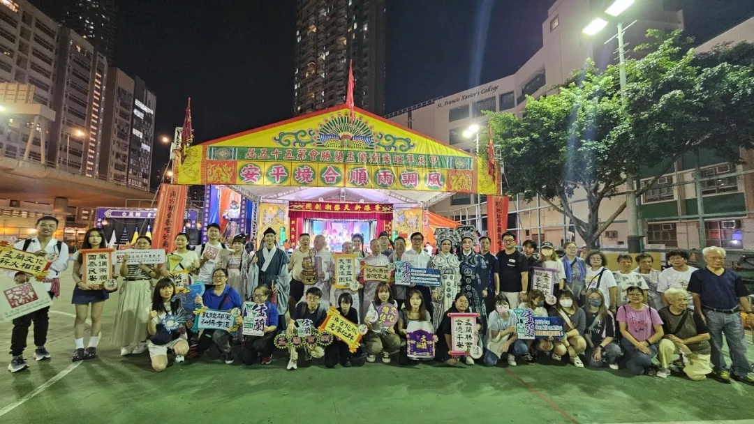 其後大家到達旺角潮僑盂蘭勝會進行巡迴快閃,與潮劇演員合照,同時胡炎松主席為參與者介紹深入介紹盂蘭勝會場地背景資料,參與者亦在特色佈置紅米包前合相打卡,讓盂蘭文化保育工作有更多人認識。