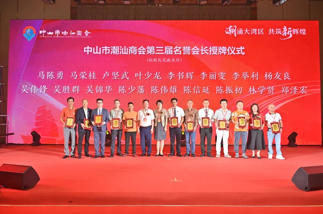 中山市委常委、統戰部部長劉美新劉常委表示:中山市潮汕商會自成立以來積極參與社會建設,回報家鄉和社會,助力百千萬工程,在圍繞市委市政府中心工作、積極參與低效工業園改造、推動企業數位化轉型升級等方面做出了較大貢獻,得到了中山和潮汕地區政府的認可。近年來全市廣大企業家,堅定信心,政企同心,拼經濟,腳踏實地,加油幹,堅定扛起中山經濟高質量發展的重任!在市場浪潮中,敢闖敢拼!勇立潮頭!拼出了來之不易的戰果!希望商會充分發揮橋樑紐帶作用,及時反映企業發展中遇到的困難問題,做協助黨委政府科學決策的參謀助手。希望全體企業家朋友們滿懷壯志乘勢而戰,積極展現中山,打開東大門,擁抱新時代的新氣象,加快企業數位化轉型升級,積極投身百千萬工程和低效工業園改造,紮根中山,做大做強做優!中山市委統戰部副部長、工商聯黨組書記郭叢樞;中山市政協常委、廣東省總商會副會長、中山市工商聯(總商會)主席(會長)張燕航;第十屆世界潮商大會主席,廣東省工商聯總商會副會長,汕頭市工商業聯合會(總商會)主席(會長)黃俊輝;潮州市工商聯黨組書記、市委統戰部副部長王曉霞;潮州市工商業聯合會(總商會)主席(會長)李立勉;揭陽市工商業聯合會黨組成員、副主席吳燕;汕尾市工商業聯合會黨組成員、專職副主席劉楚斌;中山市民政局社會組織管理辦公室主任蔣森等領導嘉賓出席晚宴。