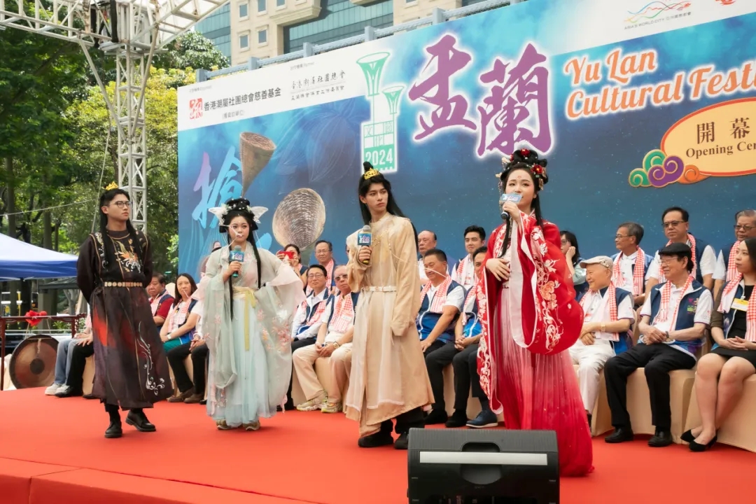 「2024盂蘭文化節」由香港潮屬社團總會屬下之香港潮屬社團總慈善基金主辦,香港潮屬社團總會盂蘭勝會保育工作委員會合作,旅遊事務署和香港旅遊發展局為支持機構,非物質文化遺產辦事處及華人廟宇委員會為贊助機構,8月23日至25日在維多利亞公園一號足球場隆重舉行。民政及青年事務局局長麥美娟,中聯辦社聯部副部長余學杰為開幕式主禮。出席開幕式的重要嘉賓有:汕頭市委統戰部副部長楊丹陽,香港特區政府康樂及文化事務署署長劉明光,非物質文化遺產辦事處總監何惠儀,香港旅遊發展局盛事發展專組總經理譚美玲,中區警區指揮官汪威遜,署理中西區民政事務專員廖婉婷。