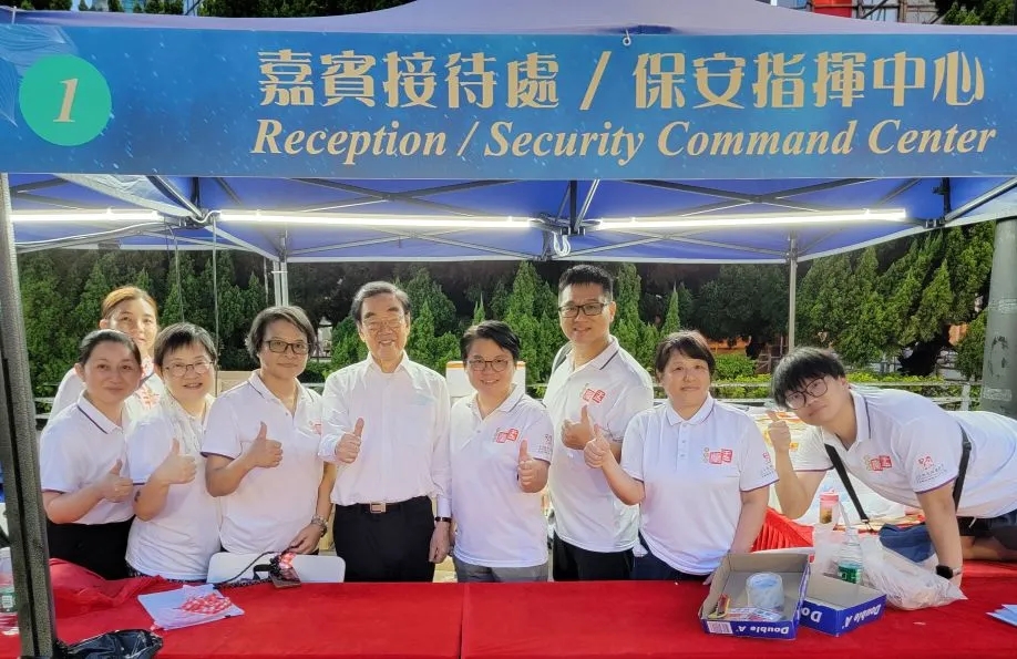 許學之永遠名譽主席主席,胡炎松盂蘭保育委員會主席與秘書處成員和義工們合影