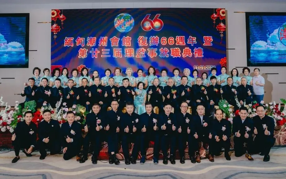 2026年1月10日,緬甸潮州會館大堂群賢畢至,第廿三屆會長交接儀式在此隆重舉行。會館永遠榮譽會長、新舊兩屆理監事、各地潮籍鄉親代表及各界嘉賓共計120位齊聚一堂,共同見證這一標誌潮人社團薪火相傳、繼往開來的歷史性時刻。