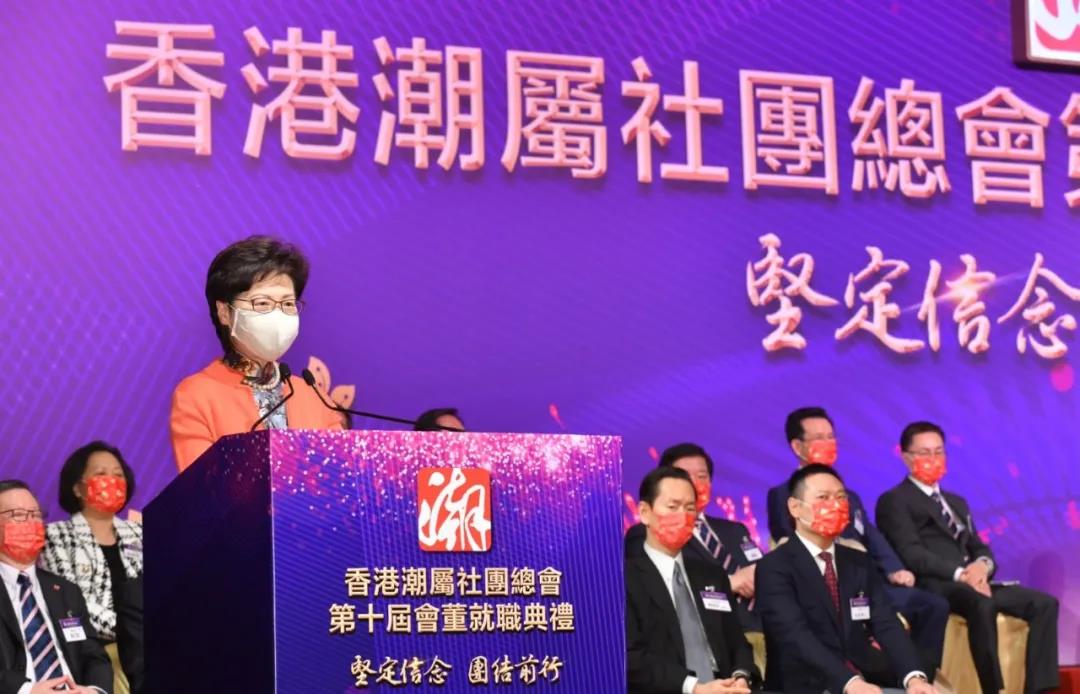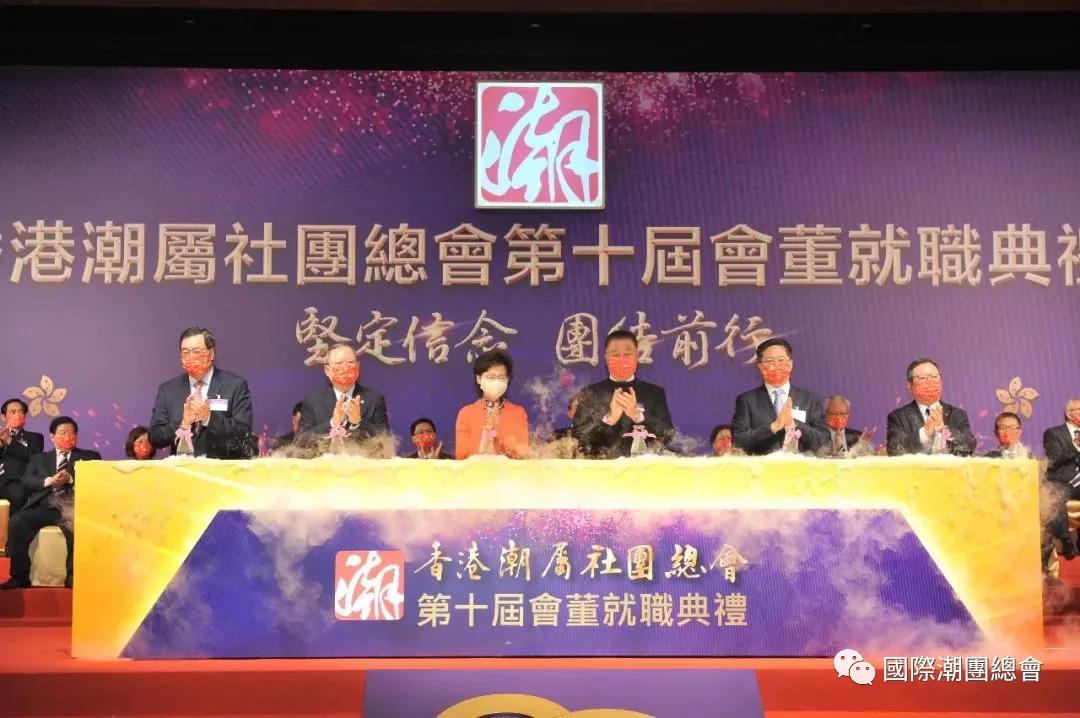 香港潮屬社團總會第十屆會董就職典禮,2021年2月21日(星期日)假座香港會議展覽中心順利舉行。行政長官林鄭月娥、駐港國安公署副署長李江舟、立法會主席梁君彥為主禮嘉賓。林鄭月娥行政長官、駱惠寧主任、萬立駿主席、張建宗司長、陳茂波司長、鄭若驊司長、李嘉誠博士等題辭勉勵。出席的重要嘉賓有:教育局局長楊潤雄,民政事務局局長徐英偉,財經及庫務局局長許正宇,駐港國安公署局長鄭澤暉、鄧建偉,警務處副處長蕭澤頤,民政事務總署署長謝小華,友好社團首長等。