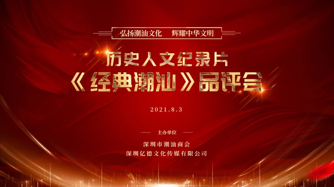 2021年8月3日下午,由深圳市潮汕商會、深圳億德文化傳媒有限公司聯合主辦的系列紀錄片《經典潮汕》第一季品評會在深圳縱橫國際影城舉行。深圳市潮汕商會榮譽會長、該片顧問李統書、莊禮祥、李友烈,深圳市潮汕商會會長鄭漢明、駐會會長黃育宏,及其他深圳潮屬社團會長、在深潮籍文化界人士及影視行業專家歡聚一堂,出席了本次品評會。