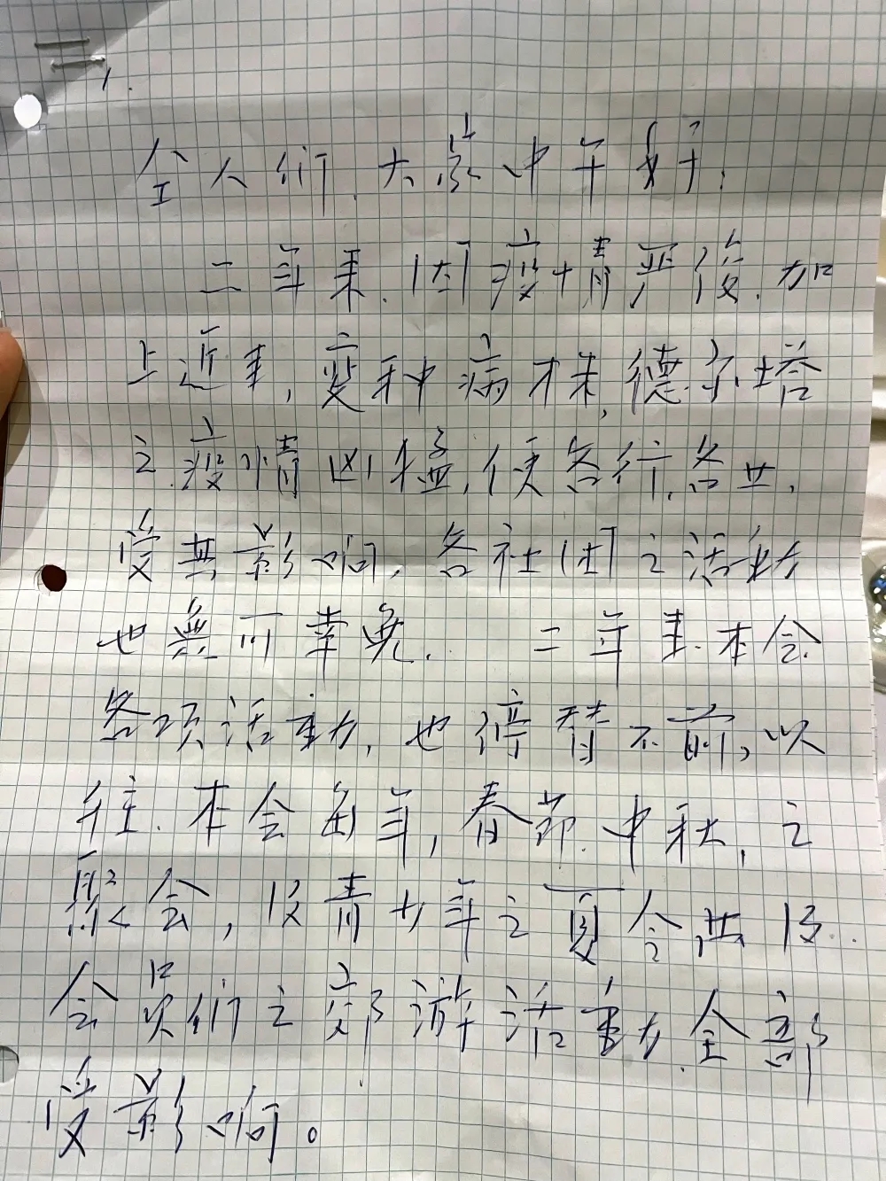蔡仁初會長原創手寫致辭稿