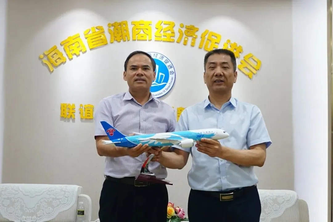 8月10日,中國南方航空公司(以下簡稱“南航”)海南分公司黨委書記王文武帶隊到海南省潮商經濟促進會考察指導,國際潮團總會主席、海南省潮商經濟促進會(以下簡稱“促進會”)會長洪江遊率第21屆國際潮團聯誼年會籌委會(以下簡稱“籌委會”)主要領導熱情接待,會議由籌委會執行主席兼秘書長邱國慶主持。