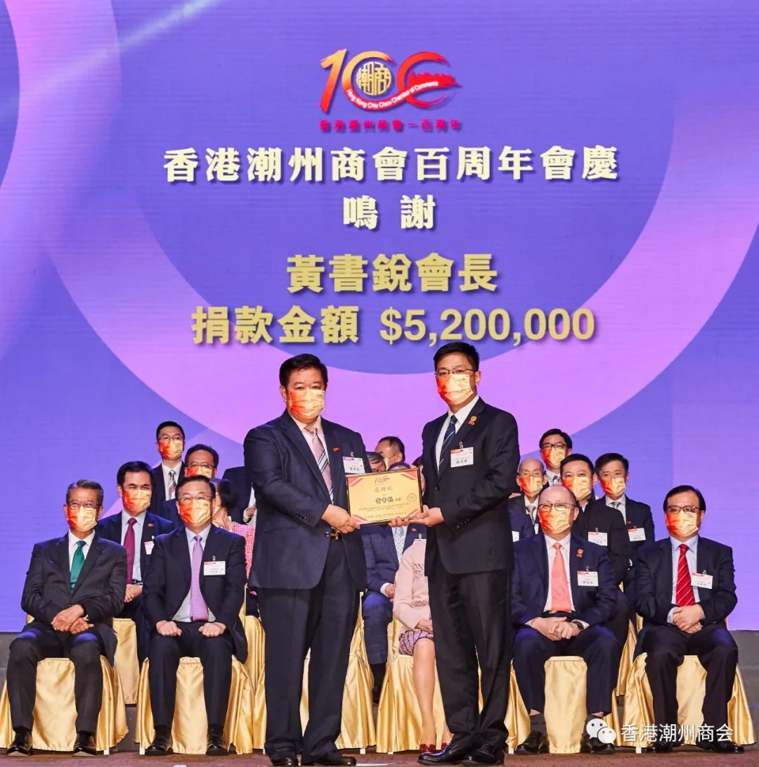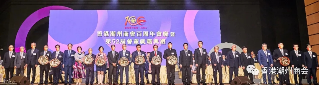 香港潮州商會會長黃書銳聯同一眾主禮嘉賓和重要嘉賓主持啟動儀式,共賀商會百周年會慶暨第52屆會董會就職,祝賀香港潮州商會會務更上層樓。也由重要嘉賓頒發感謝狀予捐款百周年慶典活動經費之熱心鄉彥 。