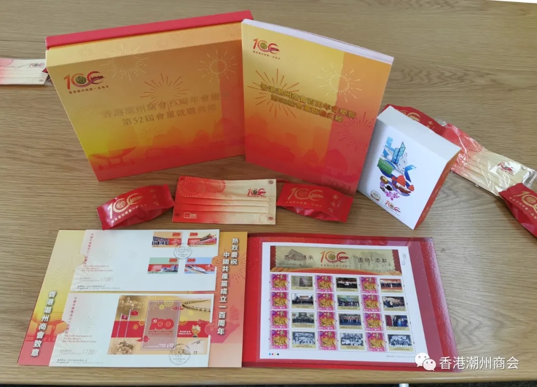 出席嘉賓獲贈精美禮品一份,包括心思心意紀念郵票套裝、中國共產黨成立百周年紀念首日封、特色三合一手機充電套裝、商會一百周年口罩、中秋月餅、精裝茶葉等
