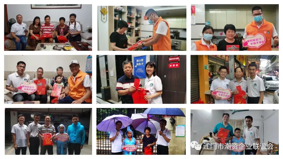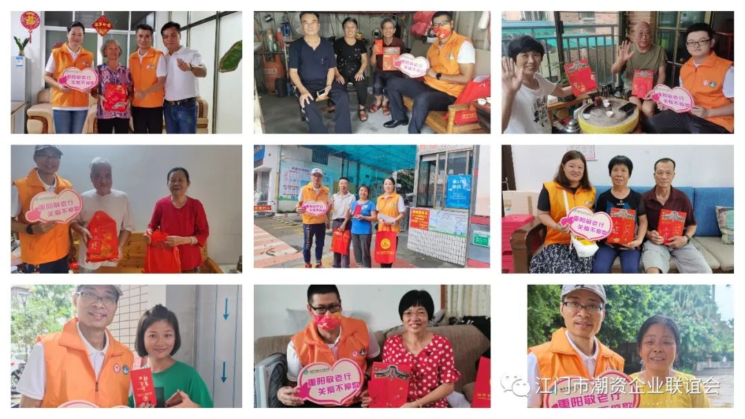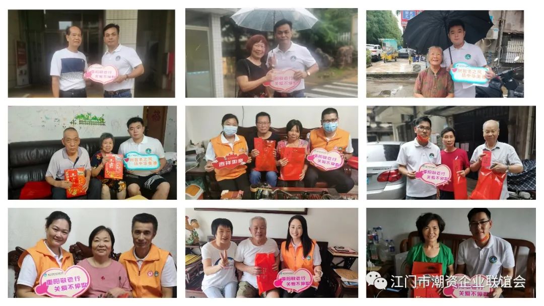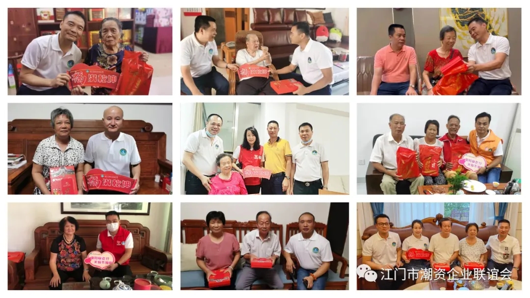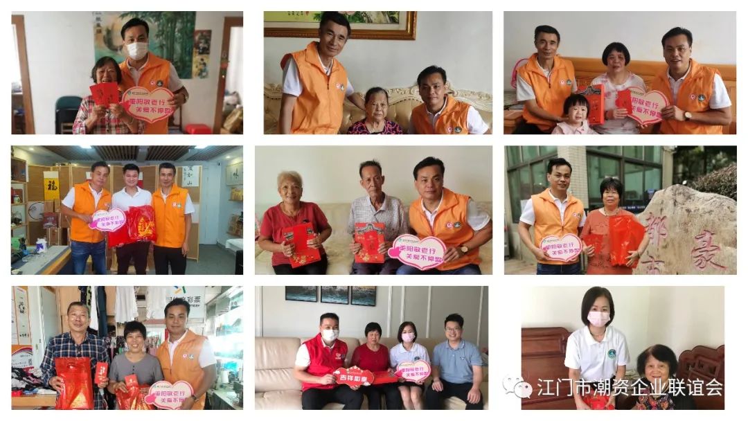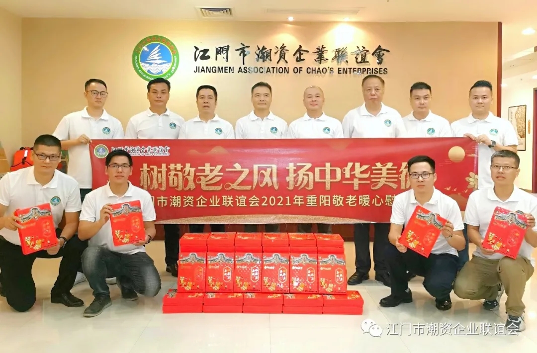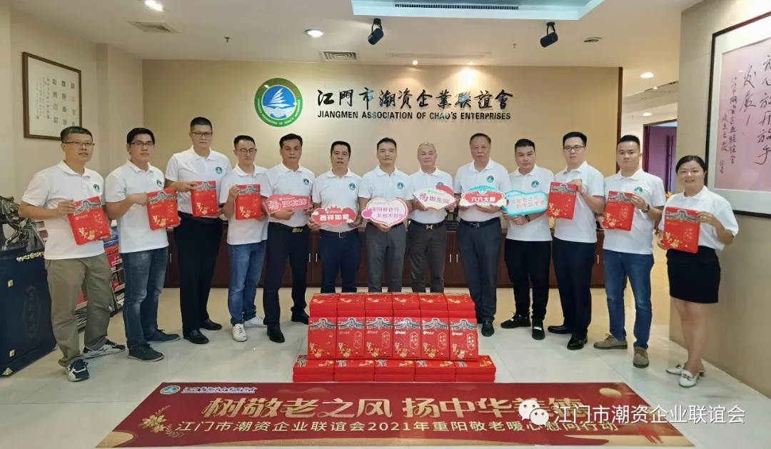 2021年10月6日(農曆九月初一),《樹敬老之風揚中華美德》江門市潮資企業聯誼會2021年重陽節敬老送福慰問行動啟動儀式在潮商大廈九樓舉行,吹響了連續一周、十幾個小組上門送福的集結活動。江門市潮資企業聯誼會向來重視尊老敬賢、弘揚中華美德,潮商的愛,在400多位江門五邑潮藉長者心中,從不缺席。