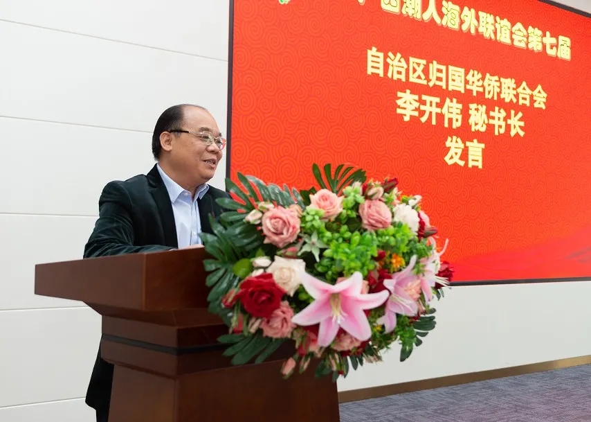 最後,自治區歸國華僑聯合會李開偉秘書長發表了講話。李秘書長對潮聯會多年來的工作做了充分的肯定。同時,他表示,相信在以陳東發會長為首的新一屆領導班子帶領下,定能攜手在廣西的潮籍鄉親團結一致,砥礪前行,充分發揮潮聯會的優勢和影響力,傳承潮人精神,取得更大成績!