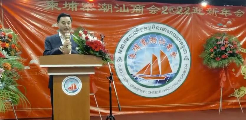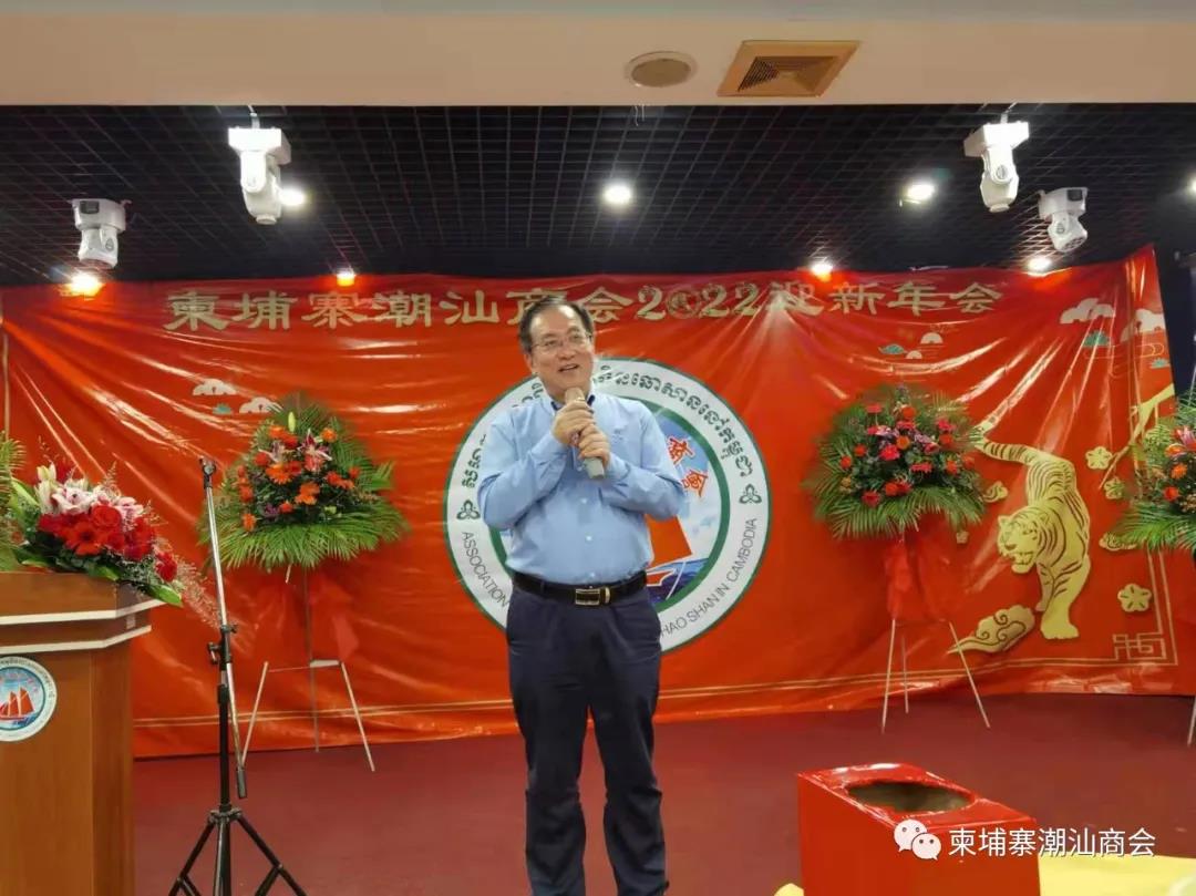 柬埔寨潮汕商會會長陳烈豪在迎新年會上發表致辭,他說,今晚我祝福大家都能平安度過2021年這個艱辛的一年,祈願大家在2022年繼續發揚自強不息的精神,把經濟建設搞上去,振興經濟。旅柬潮汕人積極融入柬埔寨社會並走出一條新僑之路,為潮汕人爭光。在2022年新的一年裏,柬埔寨潮汕商會將會繼續和大家一起,群策群力,共同面對困難和挑戰,重拾信心,以中柬兩個協定在2022年1月1月起實施為抓手,共同尋找新的發展機遇和商機。