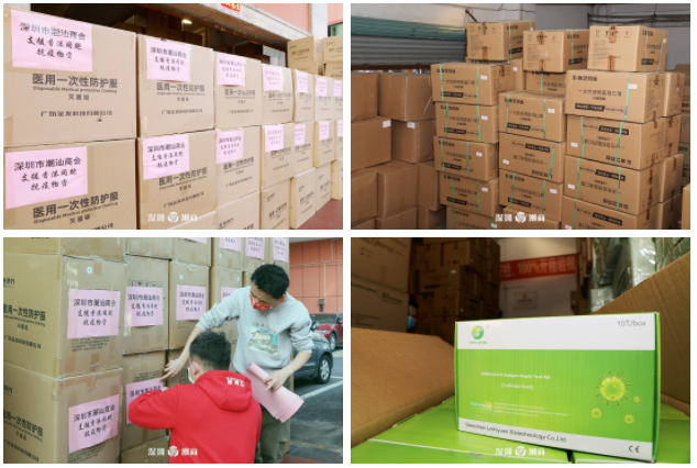 深港同心,共克時艱。香港疫情日益嚴峻,在中央及省委號召下,深圳市潮汕商會快速響應、積極行動,組織多家會員單位愛心接力,共捐出72.6萬元,購得快速測試劑3萬盒、N95口罩10萬個、兒童N95口罩10萬個、探熱針1萬支、一次性醫用防護服1萬套。