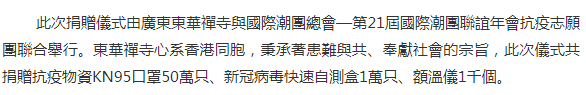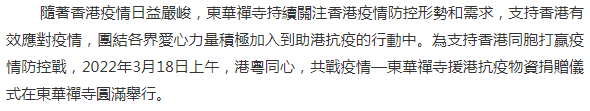 港粵同心,共戰疫情—東華禪寺援港抗疫物資捐贈儀式圓滿舉行