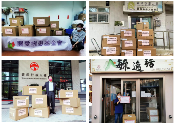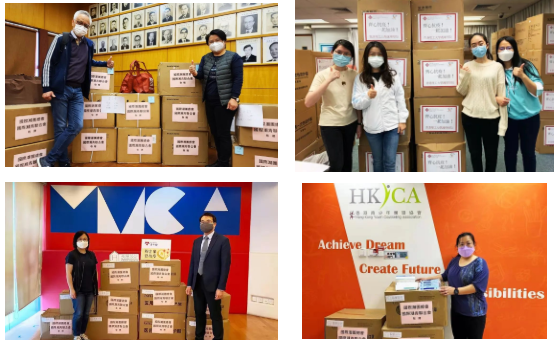 本次愛心捐贈抗疫物資受惠的機構、團體包括:東華三院、聖公會、鄰舍輔導會、視障人士福音中心、關注草根生活聯盟、香港青年輔導協會、YMCA、耆康會(葵涌)、康復力量、黃金時代基金會、豐盛社企學會、關愛病患基金會、聖保羅等慈善團體;東華學校、仁濟醫院王華湘中學及陳耀星小學、香港教師會李興貴中學、道慈佛社楊日霖紀念學校、嶺南大學、理工大學護理學院、潮州會館中學、港九潮州公會中學、廖寶珊紀念書院、潮商學校、潮陽百欣小學、潮陽小學、荃灣潮州公學等學校;本港及內地傳媒機構;懲教署在囚/更生人士、元朗警署、屯門良景邨200個低收入家庭、中西區文化藝術協會、九龍婦女聯會、盂蘭團體、前線醫護及清潔人員、五個地區聯會、37個香港潮屬屬會等團體。值得一提的是,馳援潮總的抗疫物資春風化雨,溫暖了抗疫第一線人員和基層市民的心,為眾多團體和機構增添了抗疫力量。