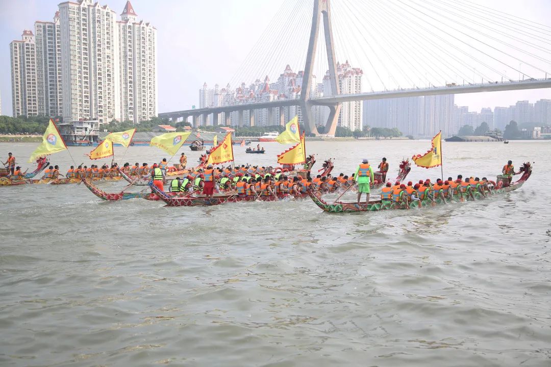 端午節素有扒龍舟、吃糉子等傳統習俗。龍舟是中國幾千年文化的積澱,承載了中華民族豐富的人文情感,代表著同舟共濟、齊心協力的精神內涵。廣東省潮商會共有六條龍舟,分別為:黃龍、青龍、紅龍、銀龍、藍龍、深紅龍,分別造於2017年和2018年,龍舟龍頭高昂、龍尾高翹、龍身彩繪,是具有潮汕特色的傳統龍舟。為弘揚中華優秀傳統,傳承潮汕民俗文化,廣東省潮商會依託廣州圓大廈的地理優勢,至今已舉辦三屆遊龍賽,每一屆賽事都得到商會全體同仁和社會各界的高度關注和大力支持,也吸引在穗潮人鄉親及周邊群眾的踴躍參與,彰顯龍舟獨特的文化魅力。