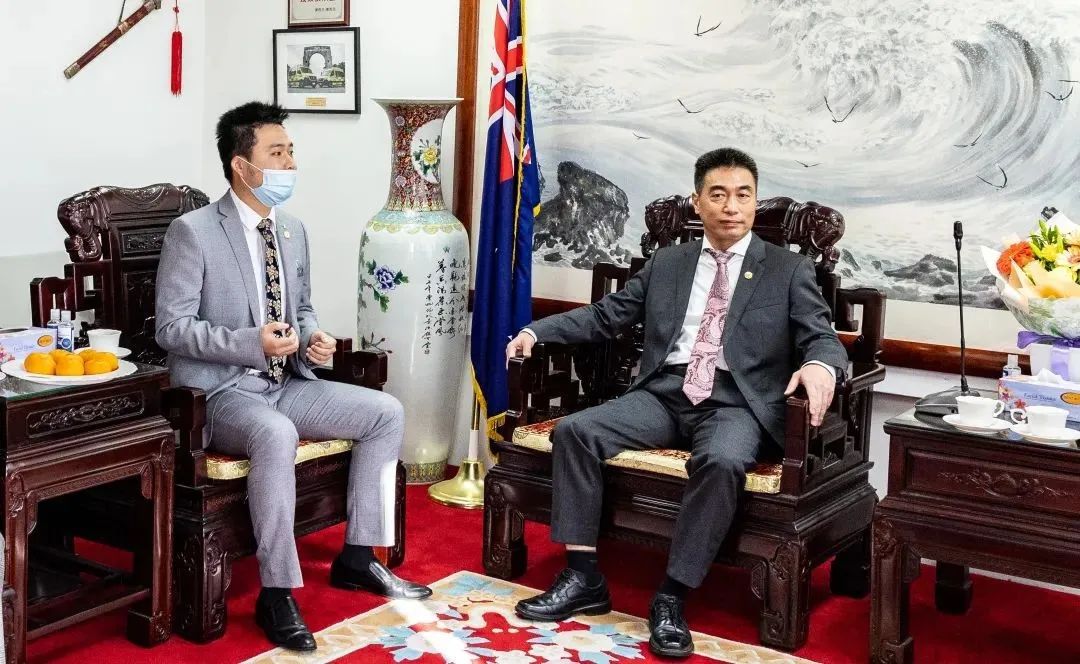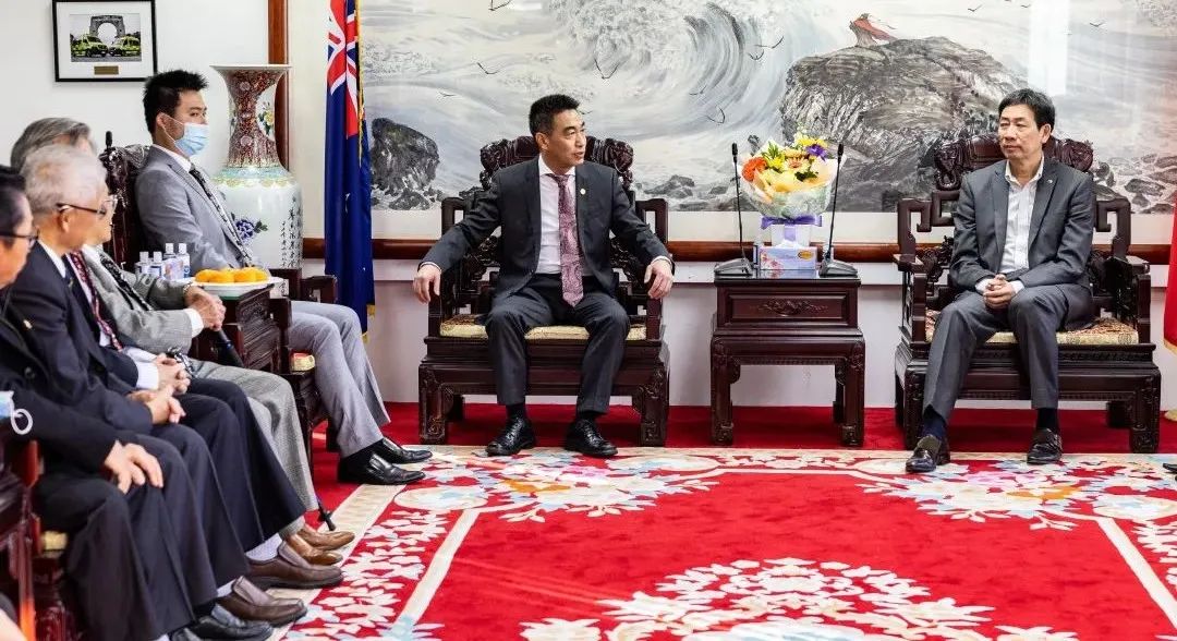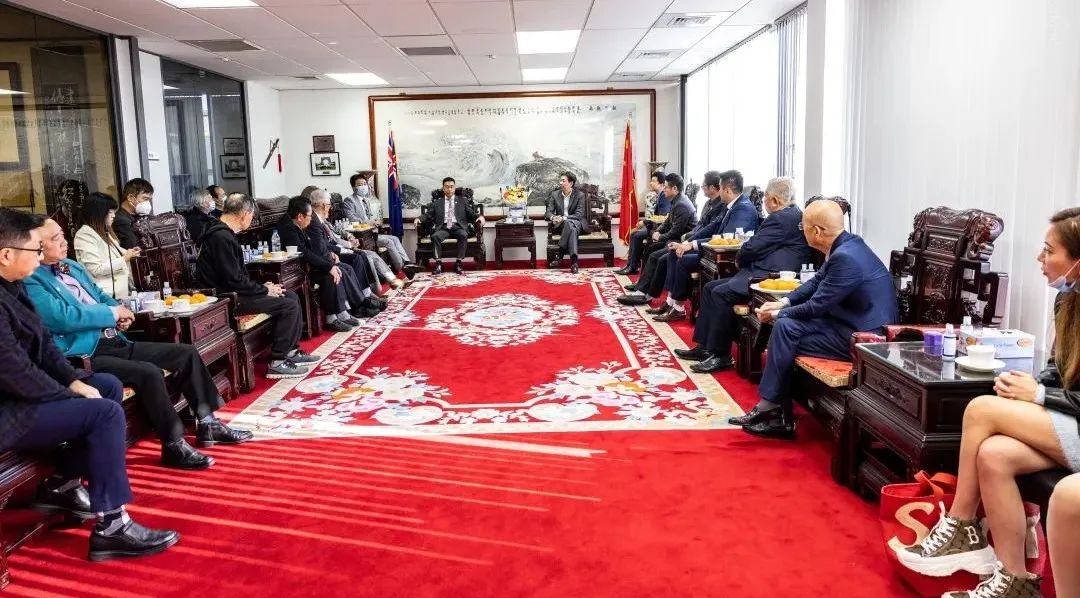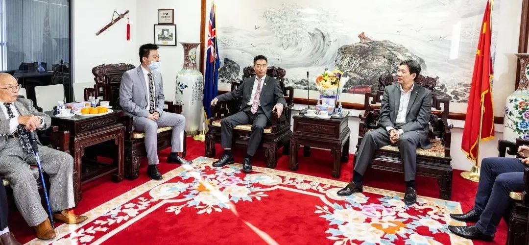2022年6月9日上午,天公作美,雨間留晴,陽光普照。新西蘭潮屬總會喜迎中國駐奧克蘭總領館阮平總領事率團訪問新西蘭潮屬總會會館。蔣俊主任與吳凱領事隨行訪問。