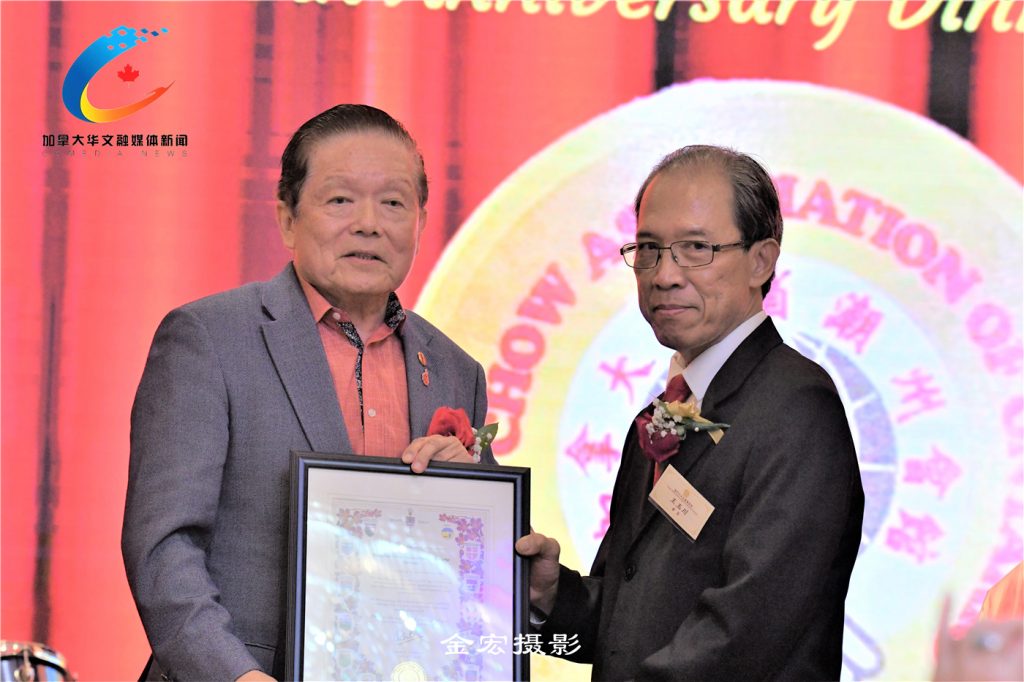 胡子修參議員向加拿大安省潮州會館頒贈聯邦參議院的賀牌