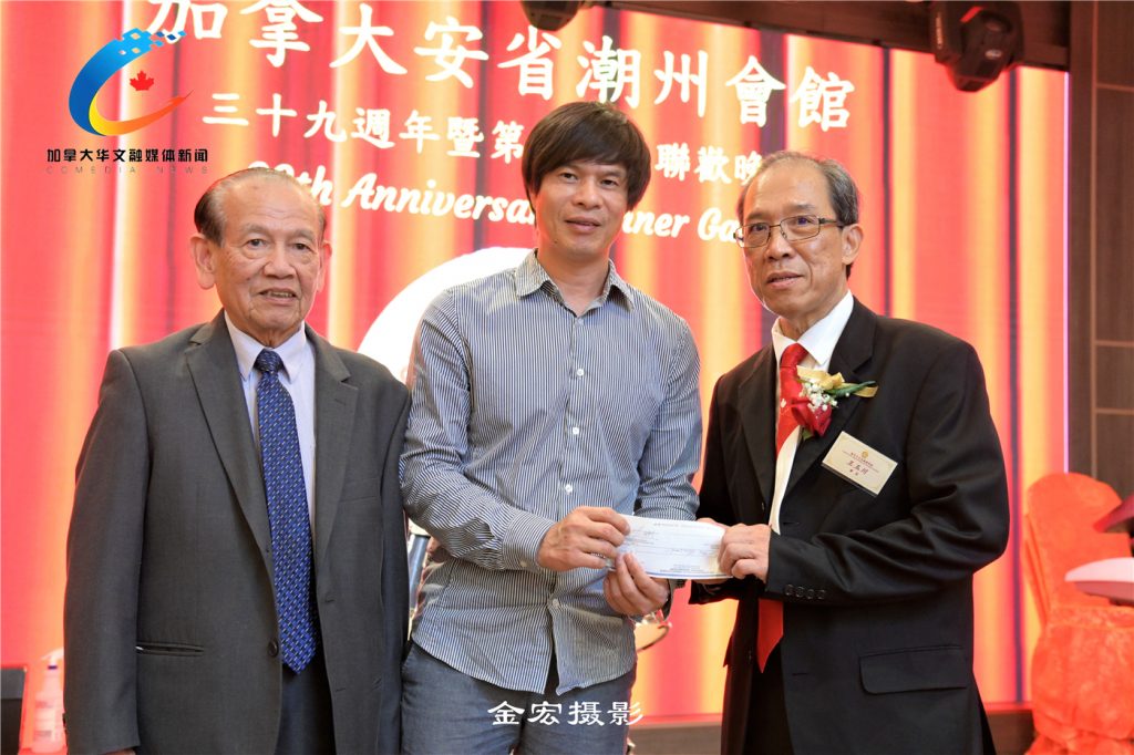 加拿大安省潮州會館最年輕的副會長林龍遠向慶典捐助2000加幣