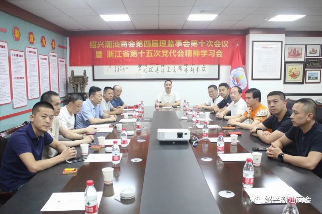 7月31日,紹興潮汕商會在會議室召開了「第四屆理監事會第十次會議暨浙江省第十五次黨代會精神學習會」,商會許志鴻會長、吳雨之高級顧問、林旻高級顧問及多位在紹理監事會成員參加會議,大家一起齊學精神,共謀發展。