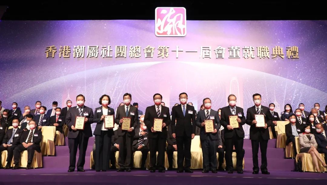 第十一屆會董會於2022年1月正式視事以來,吸納更多各界潮籍精英,凝聚各階層力量,團結聯繫各屬會,加強地區基層工作,帶領四十三個屬會特別是五個地區聯會和三市同鄉總會,大力支持特區政府抗疫防疫工作,為香港疫後經濟復甦共同努力。未來,總會將以嶄新面貌和更大力度推動香港社會安定,經濟繁榮。香港特別行政區行政長官李家超先生向陳振彬、林建岳頒發主席證書和監事會主席證書。中聯辦副主任何靖向馬介欽、莊學海、胡定旭、高永文、陳愛菁、黃書銳、莊健成頒發常務副主席證書。政務司司長陳國基向林大輝、楊育城、鄭錦鐘、胡澤文、吳宏斌、王文漢、鄭敬凱、吳家榮、高佩璇、張仲哲頒發副主席證書。律政司司長林定國向名譽會長陳強、胡劍江頒發新聘任名譽職首長聘書,向常務副主席莊學海、莊健成頒發特別貢獻獎。駐港國安公署副署長李江舟向張敬川和楊玳詩頒發常務會董及會董證書。