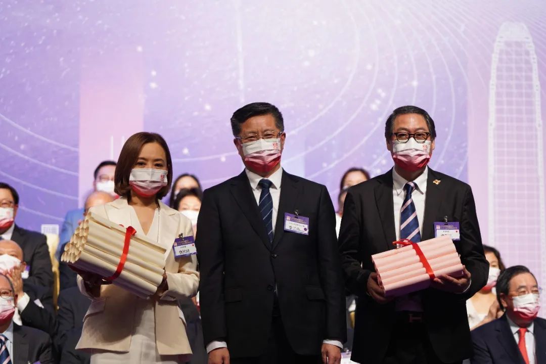 政務司司長陳國基(中)向全體副主席頒發副主席證書
