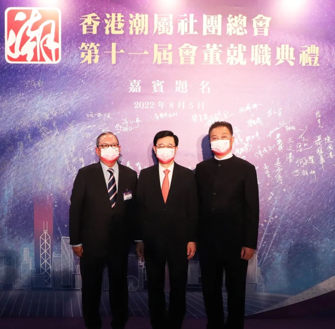 行政長官李家超致辭,他指出,習近平主席在七月一日發表的重要講話指出,香港是全體居民的共同家園,並勉勵全體香港同胞大力弘揚以愛國愛港為核心、同「一國兩制」方針相適應的主流價值觀,共同創造更美好的生活。潮總多年來用心服務國家和香港,我充分肯定總會對香港社會的貢獻。我相信新一屆會董在陳振彬主席的領導下,一定會承先啓後,繼續團結潮籍社群,發揚香港人的愛國愛鄉精神。
