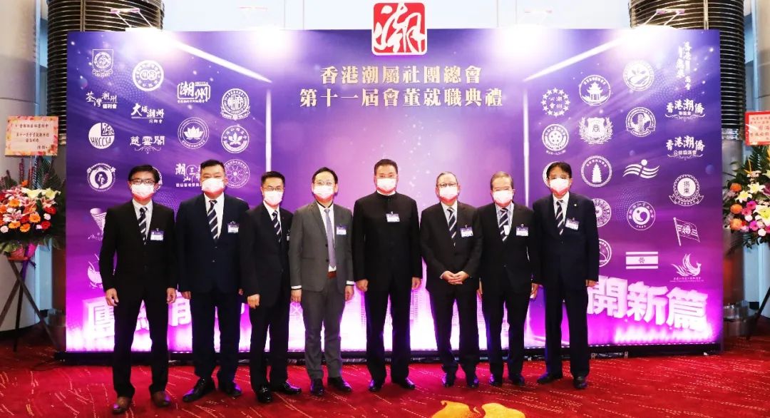 香港潮屬社團總會第十一屆會董就職典禮,2022年8月5日(星期五)假座香港會議展覽中心新翼大會堂隆重舉行。本屆會董就職典禮以「團結前行 同開新篇」為主題。行政長官李家超、中聯辦副主任何靖、駐港國安公署副署長李江舟、政務司司長陳國基、律政司司長林定國、立法會主席梁君彥、行政會議召集人葉劉淑儀為主禮嘉賓。李家超行政長官、萬立駿主席、陳國基司長、陳茂波司長、林定國司長、廣東海外聯誼會、李嘉誠博士等題辭勉勵。出席的重要嘉賓有:政務司副司長卓永興,文化體育及旅遊局局長楊潤雄,政制及內地事務局局長曾國衞,財經事務及庫務局局長許正宇,保安局局長鄧炳強,商務及經濟發展局局長丘應樺,醫務衞生局局長盧寵茂,房屋局局長何永賢,教育局局長蔡若蓮,創新科技及工業局局長孫東,民政及青年事務局局長麥美娟,廉政專員胡英明,審計署署長林智遠,中聯辦社聯部副部長黎寶忠,中聯辦港島工作部副部長王卉,中聯辦九龍工作部副部長劉國強,海關關長何珮珊,民政事務總署署長張趙凱渝,立法會議員張宇人、李慧琼、梁美芬、謝偉俊、馬逢國、陳恒鑌、郭偉強、葛珮帆、廖長江、周浩鼎、容海恩、劉國勳、鄭泳舜、謝偉銓、李世榮、李浩然、李鎮強、林哲玄、林振昇、林琳、林筱魯、梁毓偉、陳勇、陳祖恒、陳曼琪、陳凱欣、郭玲麗、黃元山、黃國、楊永杰、鄧飛、鄧家彪、黎棟國、顏汶羽、簡慧敏、蘇長榮,香港特別行政區第六屆選舉委員會委員,各友好社團首長,以及教育界、新聞界高層等。