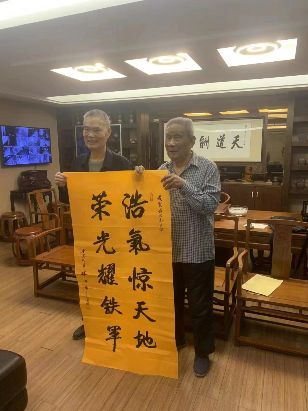 少先隊大隊長紀逸鏵,在書法比賽獲得很多佳績,如廣東省中小學規範漢字書寫大賽中榮獲軟筆一等獎等多個獎項,她不僅和麥英雄分享她的榮譽證書,還寫了一副「鋼鐵戰士」的書法作品獻給麥爺爺,以表達自己對爺爺的敬仰之情。