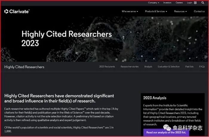 每年,Clarivate™都會評選出在各自領域具有顯著和廣泛影響力的全球研究科學家和社會科學家。這一精英群體在推動知識前沿、帶來創新,促進世界更加健康、更加可持續和更加安全等方面貢獻卓越,被選中的研究人員是基於他們在過去十年中在Web of Science中發表了多篇高被引論文™,即在其領域和發表年度中被引用排名前1%的論文。