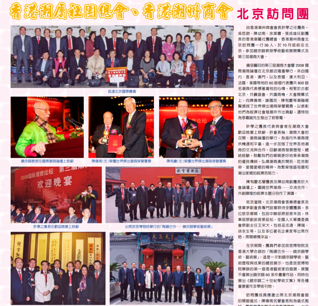 在推動香港與祖國內地雙向交流方面,許學之曾帶團赴北京出席2008 國際潮商論壇暨第三屆潮商大會、陶鑄古今——饒宗頤學術藝術展開幕式;赴汕頭出席首屆粵東僑博會暨汕頭市經貿洽談會,赴潮汕四市、河南省等地考察座談,帶領會員加強對外交流,拓展商機;與潮州海外聯誼會等聯合舉辦過「攜手合作,增強信心,共謀發展——潮港兩地企業家應對金融危機座談會」,兩地精英企業家互動交流,為克服金融危機和企業發展出謀獻策;組織舉辦粵東地區高級管理人員培訓班「城市發展與環境」、「醫療及衛生福利」等專題課程,邀請粵東四市(汕頭、潮州、揭陽、汕尾)有關部門領導蒞港學習交流,大力推動家鄉全面發展。