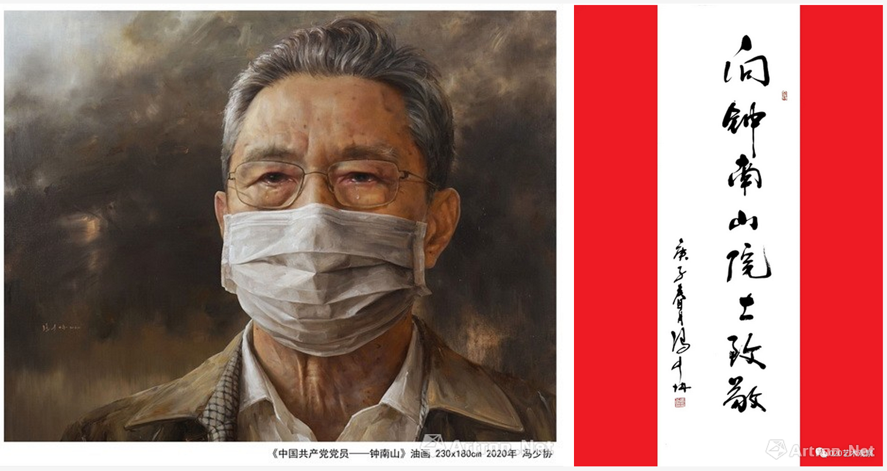 去冬今春,面對洶湧撲來和迅速蔓延的新冠肺炎疫情,84歲的鐘南山院士再次沖入一線晝夜奮戰,體現了“為天地立心,為生民立命”的偉大精神。同時更體現了一個中國共產黨黨員敢於擔當、勇於盡責的政治品格。有著55年黨齡的鐘南山院士自始至終踐行著他的入黨誓言。一心為了國家和民眾,在國難當前挺身而出,為我們廣大黨員樹立了榜樣。作品也強化了面對國家災難,鐘南山忍不住落淚,這眼淚是為國家安危而流、為民眾的安危而流、為無數無名英雄奮戰在一線的勇敢與堅強而流!——馮少協