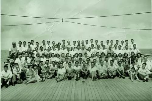 1950年8月31日,100多位中國留學生乘坐「威爾遜總統號」郵輪離開舊金山回國,回國途中在船尾合影侯祥麟回國後先是在清華大學任教,後被調任至燃料工業部石油管理總局從事研究工作,投身於新中國石油工業的科學研究事業。