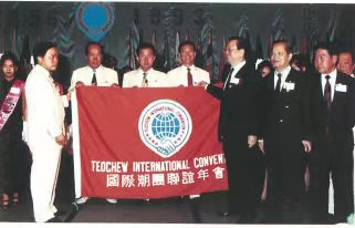 另一件事,也彰顯陳主席做事認真,待人真诚的風格。那就是接受越南義安會館參加是次大會,陳主席也是先徵求各地潮團意見,形成决議,再行邀請。原先在戰亂中蒙受巨大打擊的印支三國潮人,飽經滄桑,劫後餘生,在陰霾散去、和平曙光初露之際,重建家園、重建社團,冲破重重障礙,投入國際潮團大家庭。陳主席認為,盡管不同國家有不同的社會制度,但旅居當地的潮人繼承先輩的光榮傳統,發揚中華文化的優秀美德,四海之内皆兄弟,天下潮人一家親。第8届國際潮團年會上,越南、柬埔寨、老撾三地同鄉組織的代表團體首次同場出現,受到與會者非常熱烈的歡迎,充分表現了全球鄉親血濃於水的真摯感情。