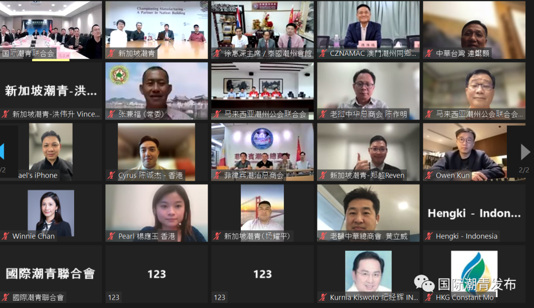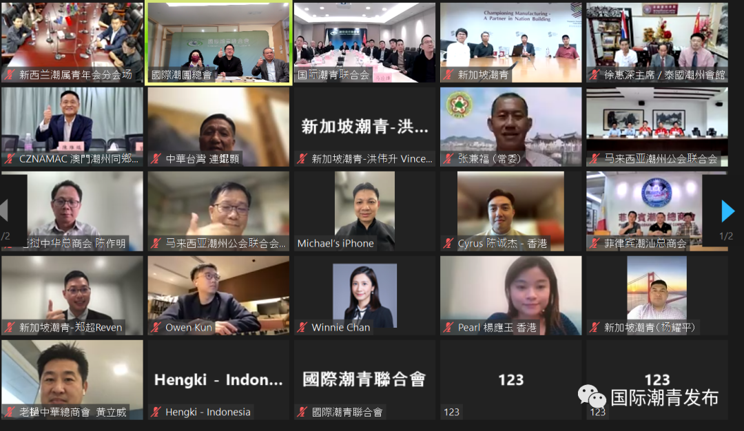2023年1月7日下午,由國際潮團總會策劃、國際潮青聯合會主辦的海外青年線上交流會順利召開。來自香港、澳門、深圳、臺灣、新加坡、泰國、馬來西亞、印尼、菲律賓、老撾、柬埔寨、澳洲、新西蘭等國家和地區的十多個潮屬社團和潮青社團代表通過線上方式,共同探討國際潮青事業創新發展之路。