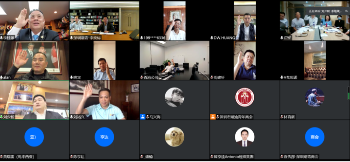 李桂雄會長致辭,因受疫情影響召開網路視頻會議,共同探討國際潮青聯合會近期有關事項,希望各位會長提出寶貴意見和建議。半年來,新冠病毒襲擊全球,給祖國人民和海內外華僑華人、潮籍鄉親們的生命安全、身體健康造成了極大的威脅。世界各地的潮人、潮團、潮青,積極努力尋找醫療物資,通過各種管道捐贈並送往祖國、家鄉防疫前線,國際潮青聯合會成員們在此次疫情中,為祖國和各國的疫情防控做出了極大的貢獻。上個月祖國兩會勝利召開,中國抗擊新冠病毒取得了巨大成功,突顯了國家綜合實力和制度優越性,我們全球潮青對祖國充滿信心。國際潮青聯合會全體同仁對全國人大通過實施涉港國安法表示全力支持和擁護!今年1月,國際潮青聯合會深圳代表處的揭牌成立,壯大了國際潮青聯合會的力量,有利於國際潮青聯合會的迅速發展。今年9月,我們將召開年度會員大會,也將會產生國際潮青新一屆領導班子。