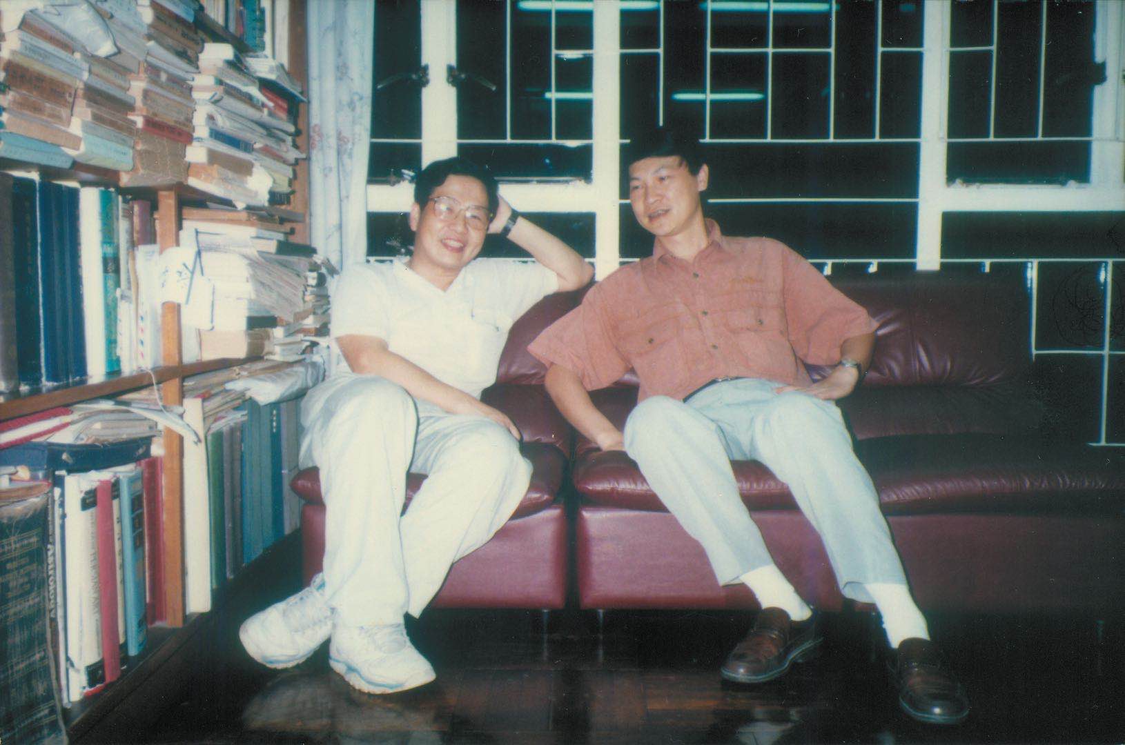 1993年沈啟綿(右)及林楓林於香港跑馬地饒公書房