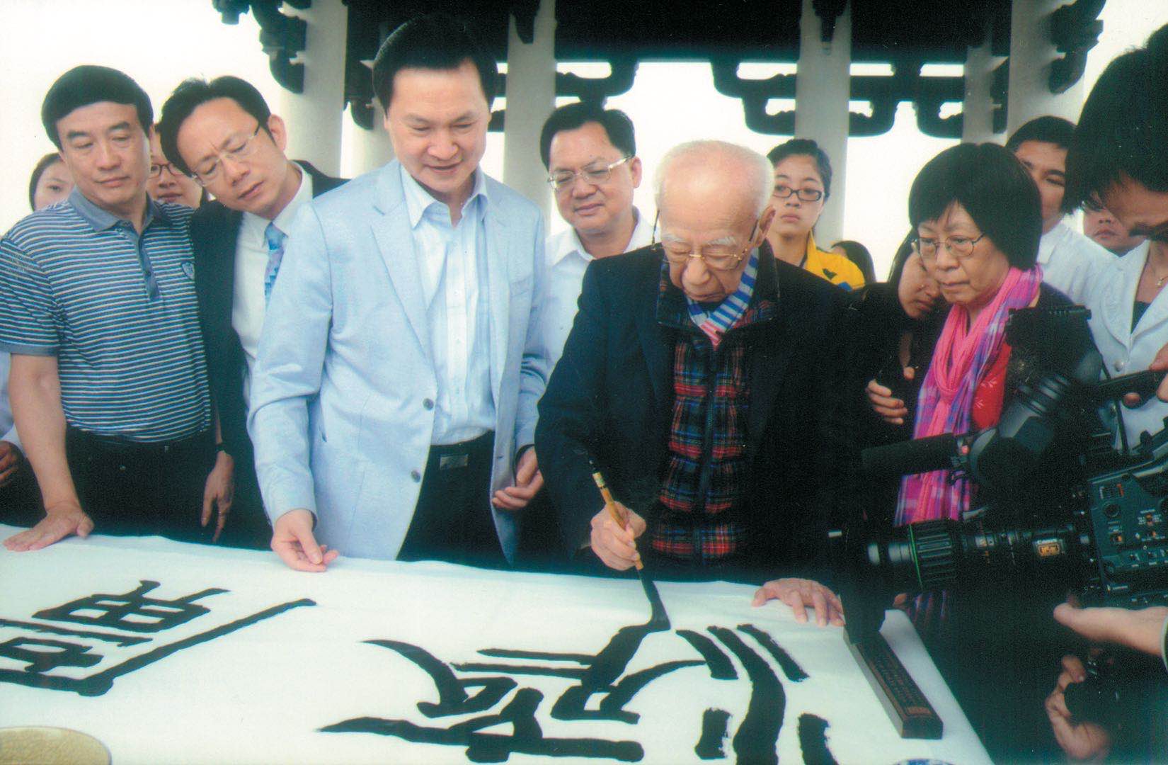 2011年4月23日,95高齡的饒公在湘子橋上即興揮豪