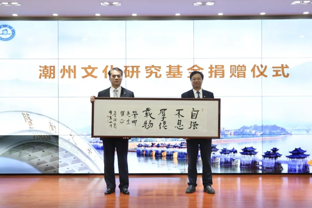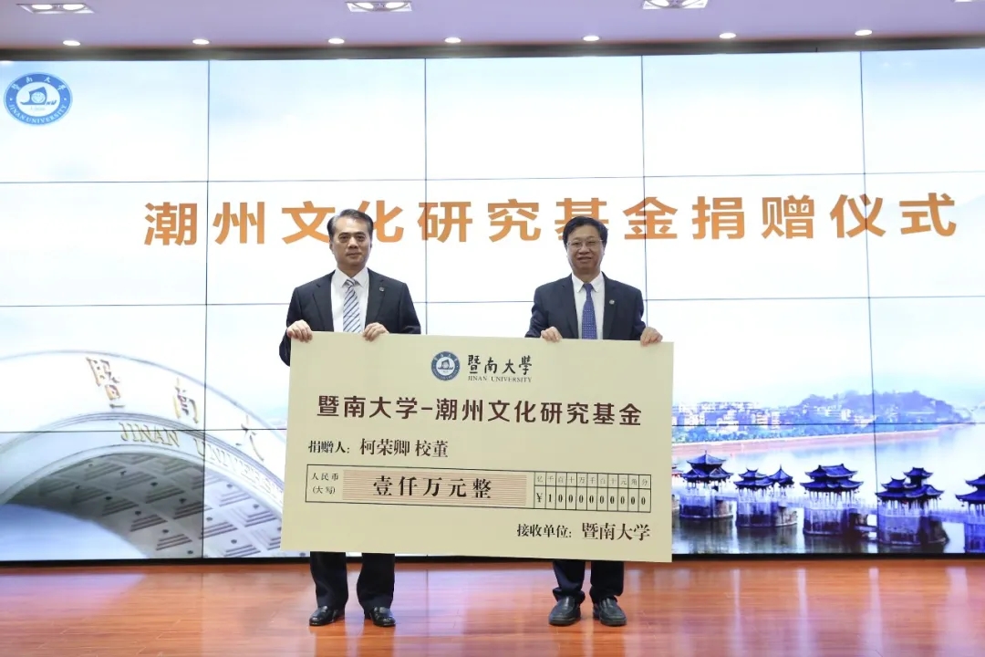頒發聘書後,舉辦了潮州文化研究基金捐贈儀式,暨南大學校董柯榮卿先生捐贈1000萬元人民幣作為潮州文化研究基金的首筆捐款。