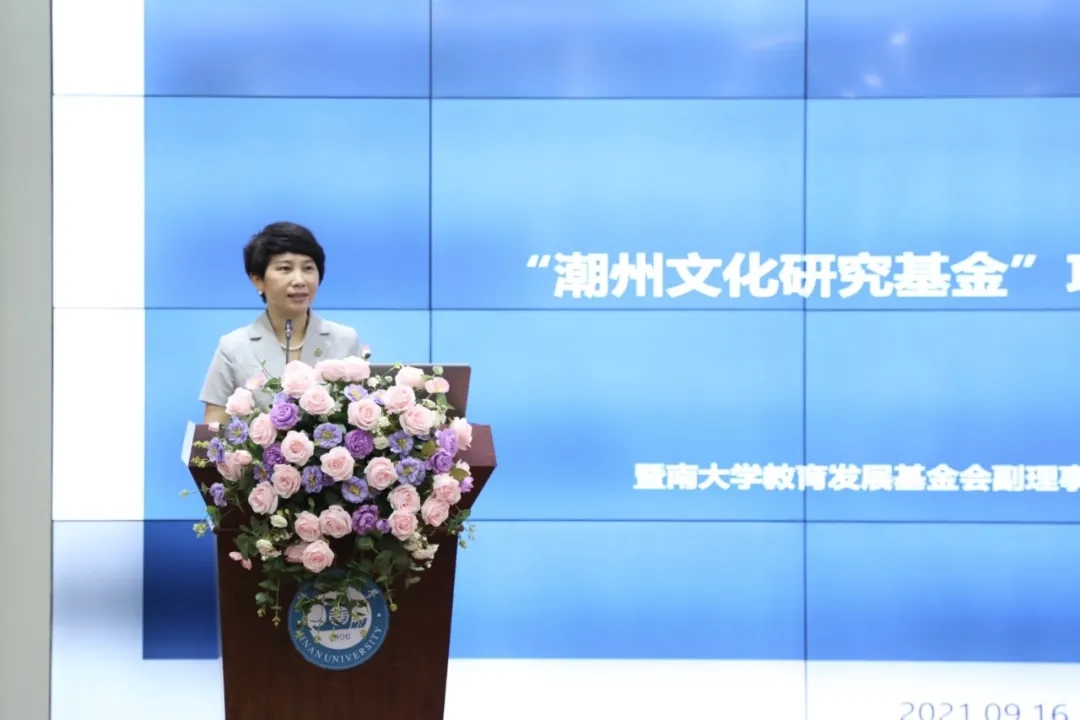 暨南大學教育發展基金會副理事長兼秘書長梁燕介紹潮州文化研究基金