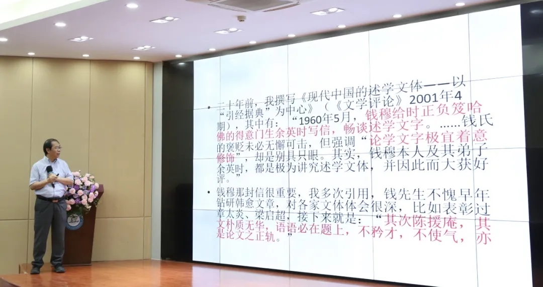 儀式過後,由程國賦教授主持潮州文化研究院院長陳平原教授的講座《“養”出來的學問與“活”出來的精神——教育史及學術史上的陳垣、呂思勉、錢穆、饒宗頤》。陳教授的講座不僅牽涉治學方法,更延及人生境界,他認為城市需要養育,人才更需要養育。