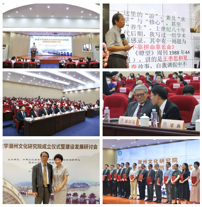為傳承發展潮州文化,推進中華文化創新發展,9月16日,“暨南大學潮州文化研究院”成立儀式及發展建設研討會在暨南大學石牌校區舉行。暨南大學校長宋獻中教授、暨南大學黨委副書記夏泉教授、暨南大學校董柯榮卿先生、暨南大學詹伯慧教授、北京大學陳平原教授以及來自省內外其他高校、文化機構和企業的近60名專家和企事業代表參加了成立儀式。