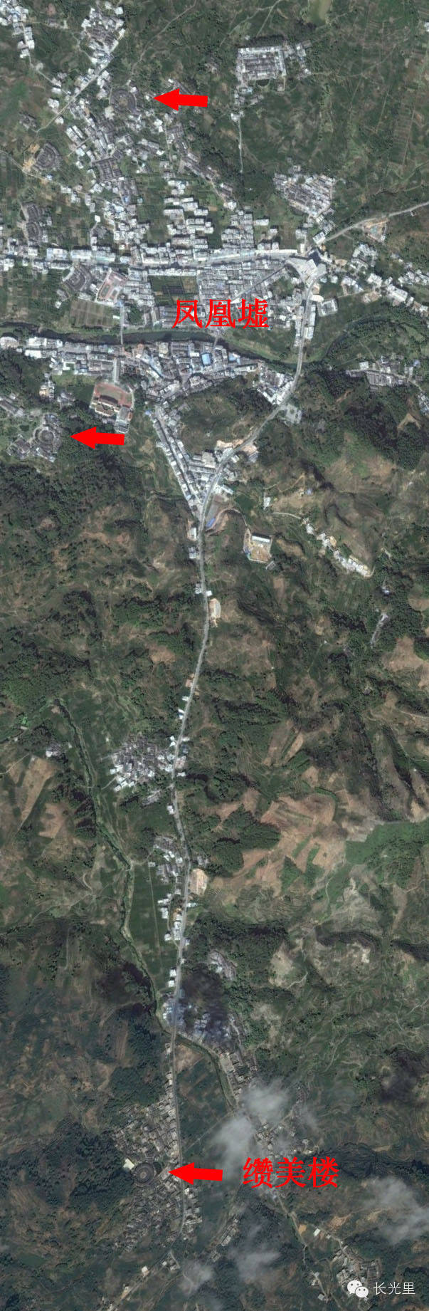 鳳凰來儀,一個吉祥的名字,點綴在鳳凰墟的旁邊上,卻鮮有人知道。從衛星地圖上可看到鳳凰墟周邊有三座圍樓。問了鳳凰的本地人,大多只認識纘美樓,並不知道鳳凰墟附近還有其他二座土樓。於是,根據衛星地圖,我們找到了位於最上方的土樓:來儀樓。
