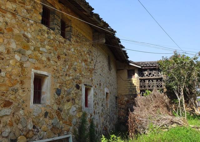 從外牆的坍塌處看,厚近半米的外牆是用紅土砂石加大塊的石頭夯成的,這種看似原始的建造方式,卻讓土樓至少經歷了兩三百年的風風雨雨而不倒塌。