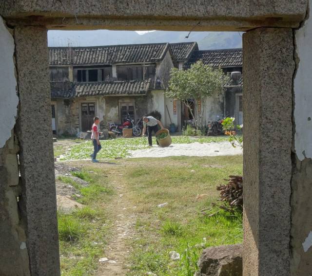 春茶季節,來儀樓中間八百多平方米的內埕成了村民曬茶青的好地方。