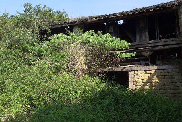 成片的房屋倒塌已經幾乎是潮州每座土樓都曾經歷過的,有的房子倒了,就成了雜草的家,有的房子倒了,原主人又在它的地基上蓋了風格各異的房子。