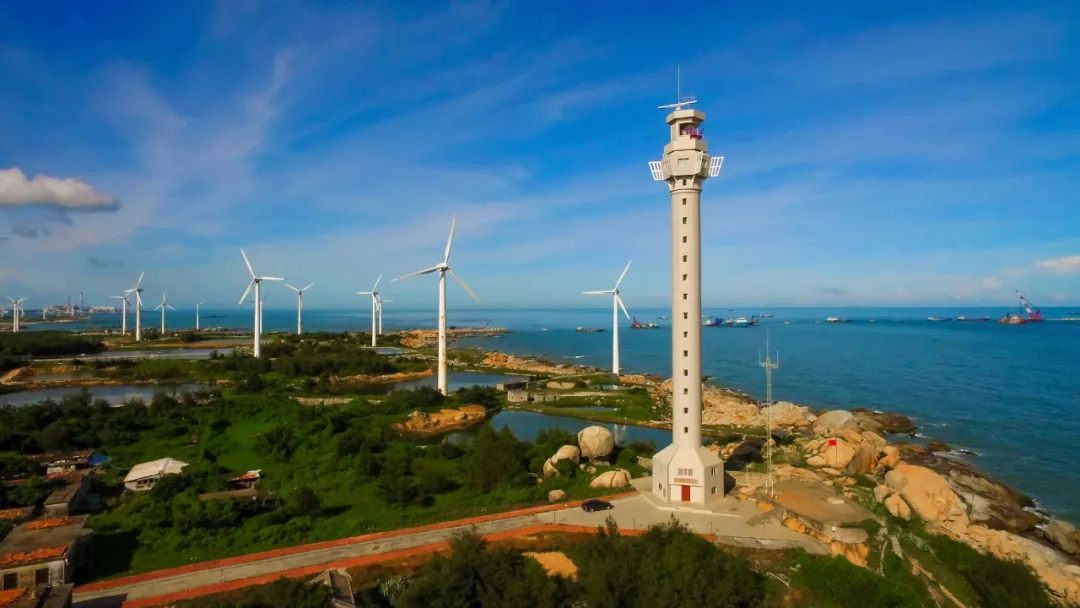 靖海港作為惠來古港之一,是惠來海上門戶的交通要塞,萬桅千帆,往來頻繁。燈塔的存在旨在預防船隻觸礁,保障了航海舟楫的安全。石碑山燈塔是中國沿海的古老燈塔之一,歷經百年滄桑和硝煙戰火,如今依舊巍然屹立在海崖之上。擡頭仰望,一塔高聳入雲端,暮色千里引歸航。晴空萬里之時,端莊威嚴的白色燈塔與不遠處轉動的風車動靜相宜,夕陽之下,與碧海藍天、萬丈霞光融成一派令人賞心悅目的海景風光,美不勝收。