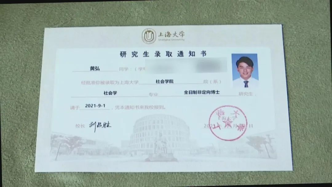 2021年8月,考上上海大學社會學專業博士研究生的黃弘收到了錄取通知書,但他卻沒有到校報到,而是報名應徵義務兵。