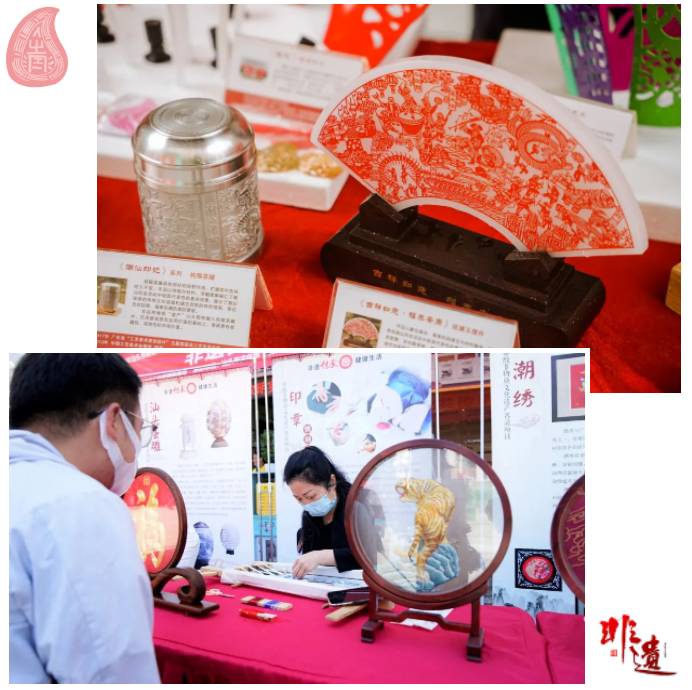 活動內容:組織酒粬發粿製作技藝、內畫(廣東內畫)、潮州木雕(汕頭市)、茶藝(汕頭工夫茶藝)、汕頭貝雕、潮繡、鮀浦石雕、印章鐫刻技藝、鑲嵌(嵌瓷)、汕頭牛肉丸製作技藝、傳拓技藝、廣德泰釀酒技藝、潮陽金漆畫、海門傅和合七米巷糕仔製作技藝、和德元大紅袍精製技藝、口喉散製作技藝、土山茶精制技藝、潮陽古建陳氏彩繪技藝、潮陽寶城烏龍茶精製技藝、潮陽棉城趙記鱟粿製作技藝、潮陽笛套大笛製作技藝等非遺項目及傳承人進行現場互動,踐行非遺走進現代生活、見人見物見生活的保護理念。