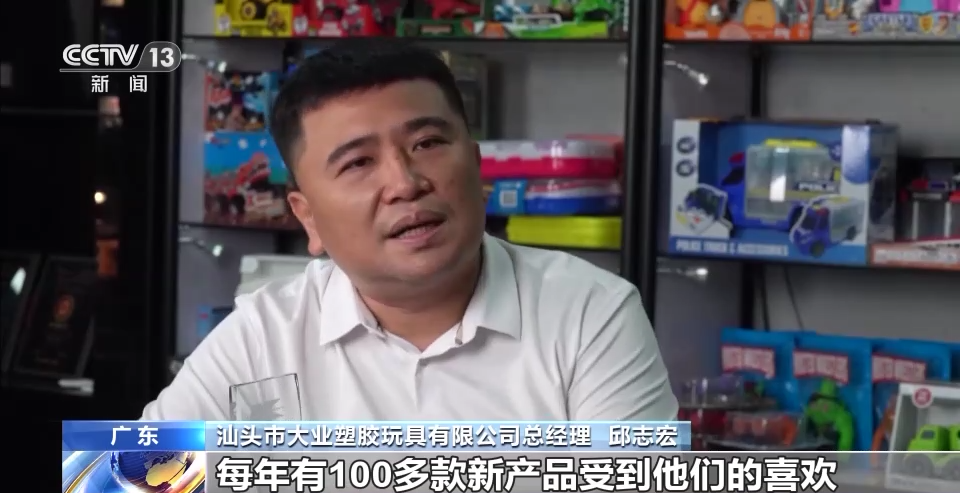 汕頭澄海玩具企業負責人 邱志宏:每年有100多款新產品受到他們的喜歡,作為一個玩具(廠家)的二代,我們真的很開心。